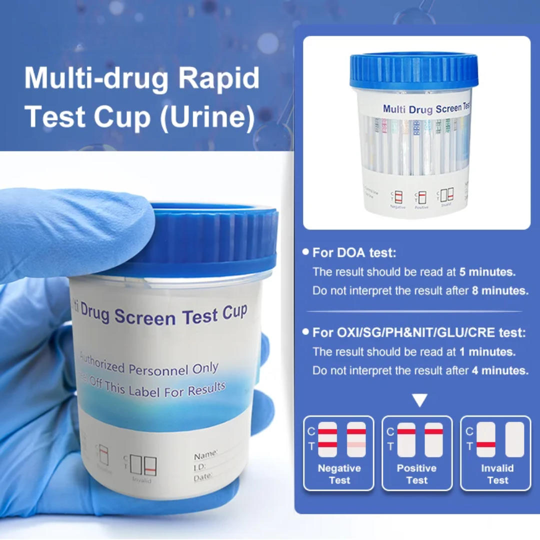 The 18 Panel Drug Test Cup is a user-friendly screening device designed for efficient, on-site substance detection. Built with a secure, one-piece design, it offers a clear result window and easy-to-read indicators, making it suitable for workplaces, educational environments, and general screening processes.